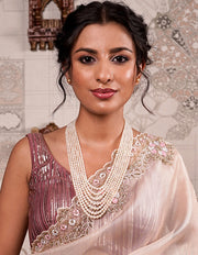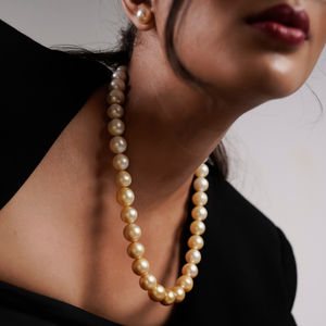 A fluid dance of light and grace, The Liana Necklace redefines classic elegance. This exquisite piece features a double strand of luminous Akoya pearls, renowned for their perfect spherical shape and brilliant, mirror-like luster. The strands cascade beautifully, with pearls graduating from a substantial 9mm to a delicate 4mm, creating a dynamic, flowing effect. The necklace is designed for seamless versatility, is a modern essential, combining timeless beauty with a fresh, contemporary design.