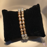 The Cora bracelet features a stunning collection of freshwater pearls, carefully selected in peach and white palette. Each pearl is skillfully, giving the bracelet an elegant, streamlined look.