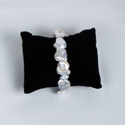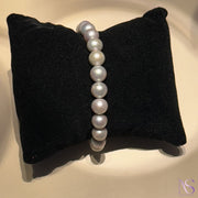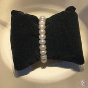 The Esme bracelet features smooth, white freshwater pearls, offering a sleek and subtle design. Its minimalist style adds a refreshing touch to your wrist without being overly bold.
