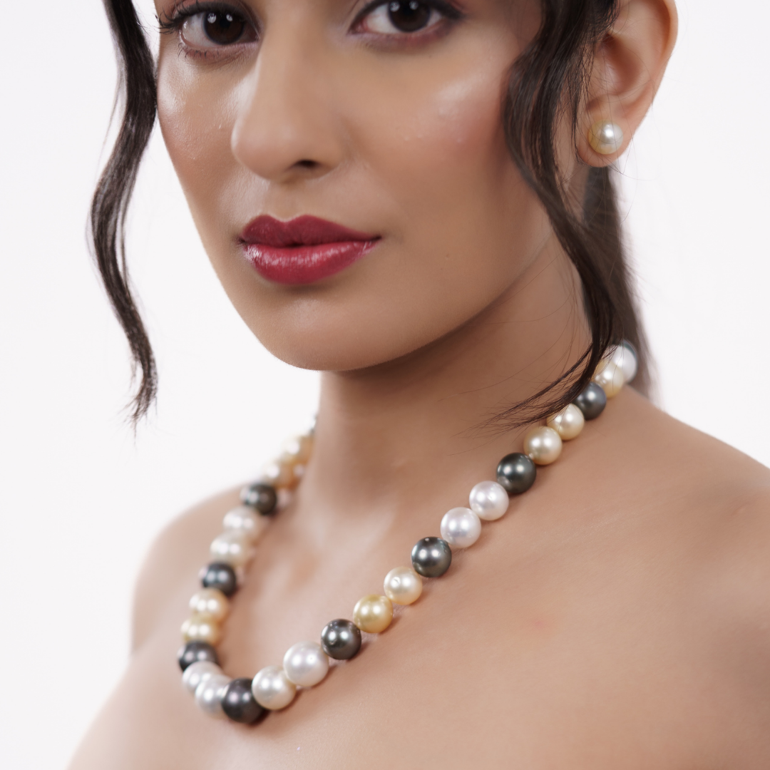 A fluid dance of light and grace, The Liana Necklace redefines classic elegance. This exquisite piece features a double strand of luminous Akoya pearls, renowned for their perfect spherical shape and brilliant, mirror-like luster. The strands cascade beautifully, with pearls graduating from a substantial 9mm to a delicate 4mm, creating a dynamic, flowing effect. The necklace is designed for seamless versatility, is a modern essential, combining timeless beauty with a fresh, contemporary design.