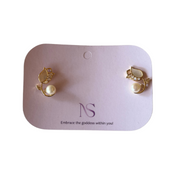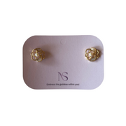Floral design small pearl studs offer delicate charm. Tiny, lustrous pearls are nestled within a beautiful floral motif. They add feminine grace and subtle elegance, perfect for everyday wear or a special, understated look.