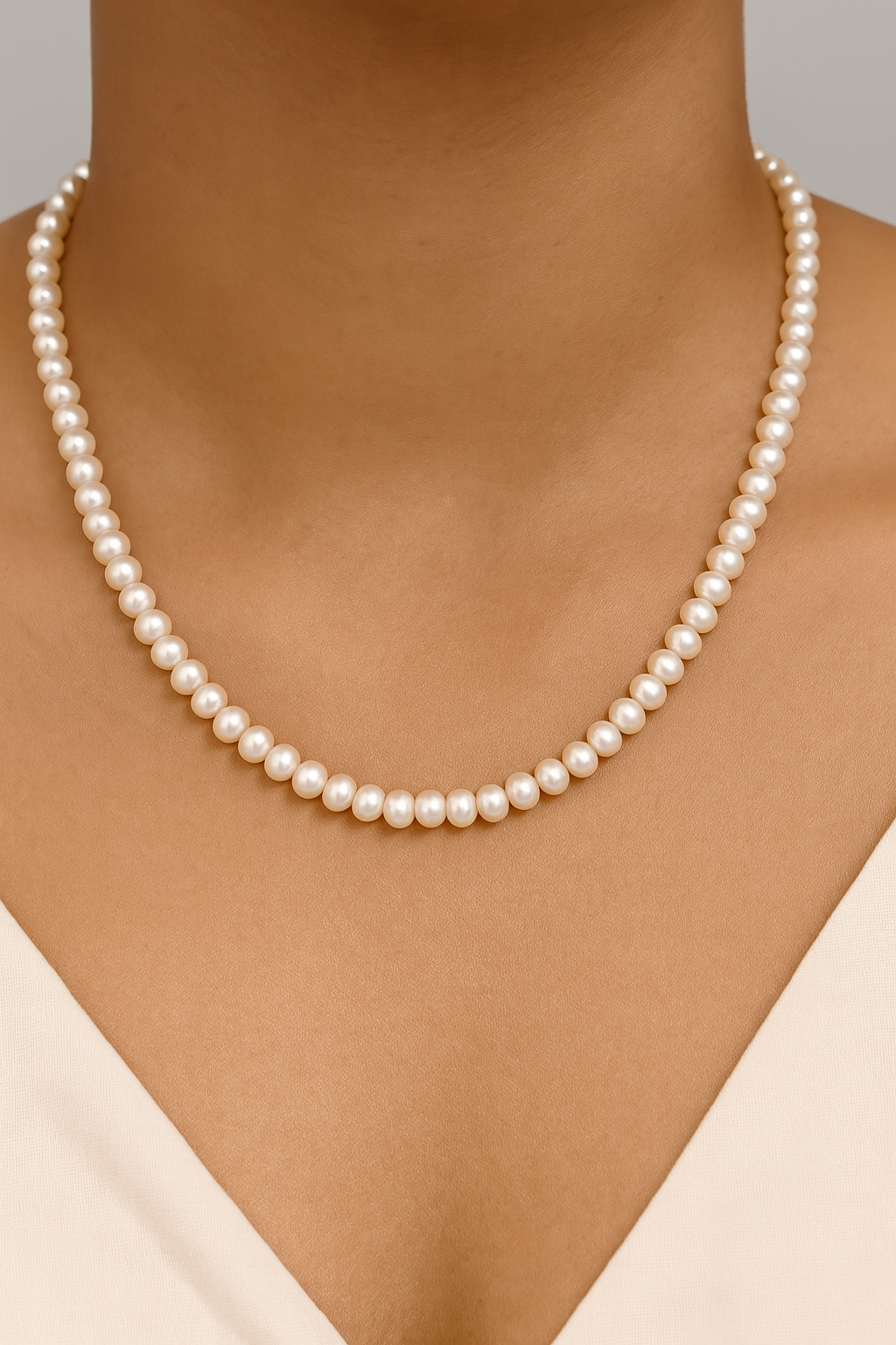 Fiora showcases baroque freshwater pearls in soft ivory, each one with its own irregular shape. The natural design and subtle sheen of the pearls bring an elegant, yet casual vibe. A must-have for pearl lovers looking for something distinctive.