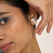 Baroque pearl studs offer distinctive elegance with unique, organic shapes. Each lustrous pearl, set as a captivating stud, provides a modern twist. They add artistic flair and understated luxury, perfect for any occasion or everyday sophistication.