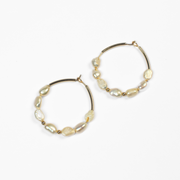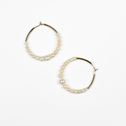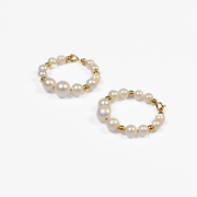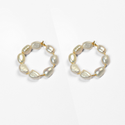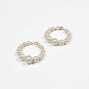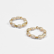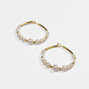 Elegant pearl hoop earrings blend classic charm with modern style. Lustrous pearls dangle from sleek hoops, offering timeless sophistication. Their versatile design adds a refined brilliance and understated luxury to any look, making it perfect for any occasion.